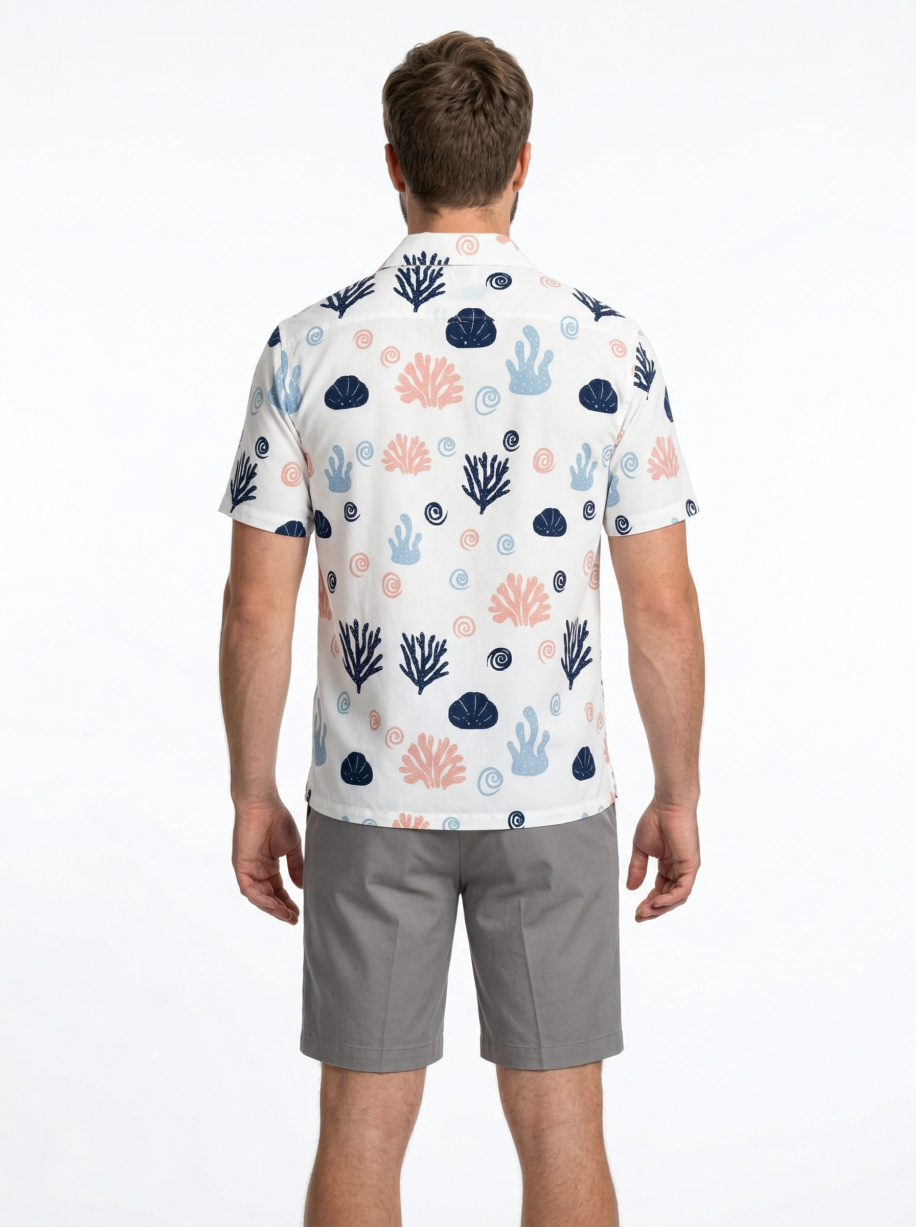 Embrace coastal elegance with this refined printed co-ord set, designed for the discerning man who appreciates sophisticated resort wear. The relaxed fit printed shirt features an artful pattern that adds character to your vacation wardrobe, while the tailored relaxed fit shorts provide a polished yet comfortable silhouette. Crafted from lightweight breathable cotton, this set offers the perfect balance of smart style and laid-back comfort, ideal for coastal getaways, resort lounging, and smart casual occasions.
